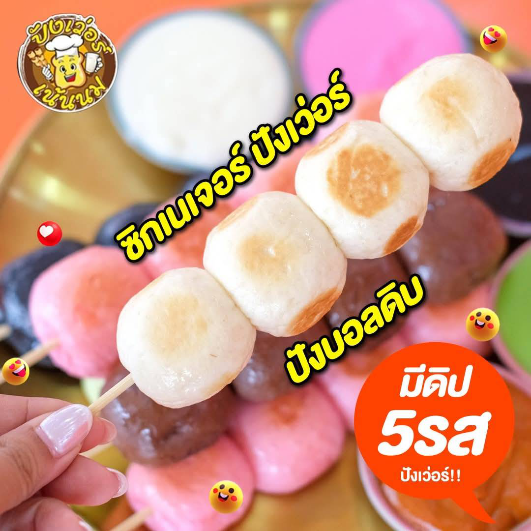 ปังดิปจัมโบ้เซ็ต จานนี้จัดหนักจัดเต็มเหมาะแก่การสั่งมาทานกับเดอะแก๊ง ภายในเซ็ต จะมีขนมปังเนื้อนุ่มหนึบหนับขนาดพอดีคำให้เลือก 6 ไม้ คละรสชาติได้